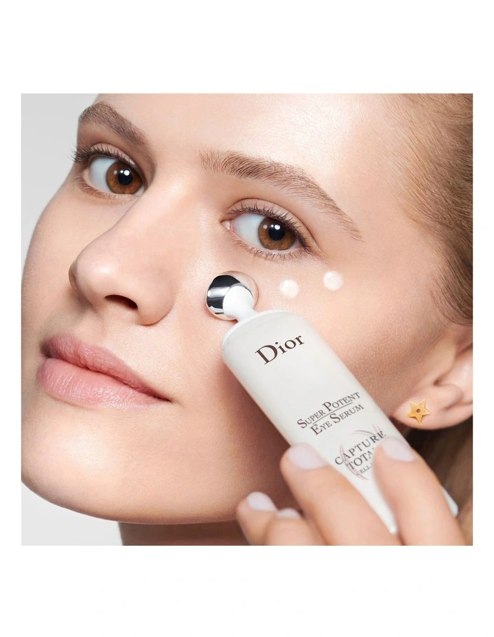 Composed of 92%****** natural-origin ingredients, Super Potent Eye Serumprovides triple action: correcting, with its formula rich in re-energisinglongoza and firming rye extract; massaging, thanks to its patentedapplicator******* and the movements performed during application; andrefreshing, due to the cooling effect of the eye contour serum and the zamakmassaging head. The 9 signs of aging identified by Dior*** appear correctedafter the very first massage, for a visibly redefined eye contour.