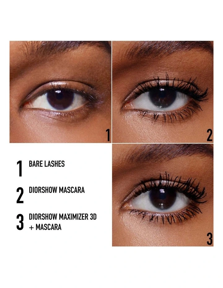 How To Use: 1. Prime your lashes with Diorshow Maximizer 3D lash primer-serum. 2. Apply Diorshow mascara, building the volume effect from the most natural to the most spectacular.