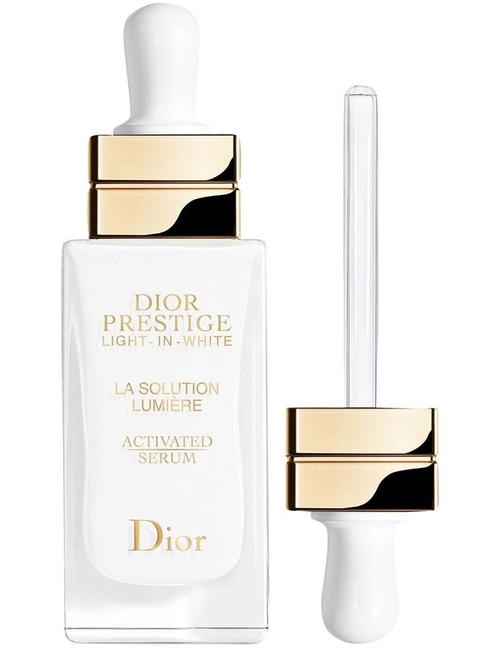 Dior Prestige Light-in-White La Solution Lumire Activated Serum solves the skins ideal light equation by acting on its two main components, chromatic purity and light intensity.